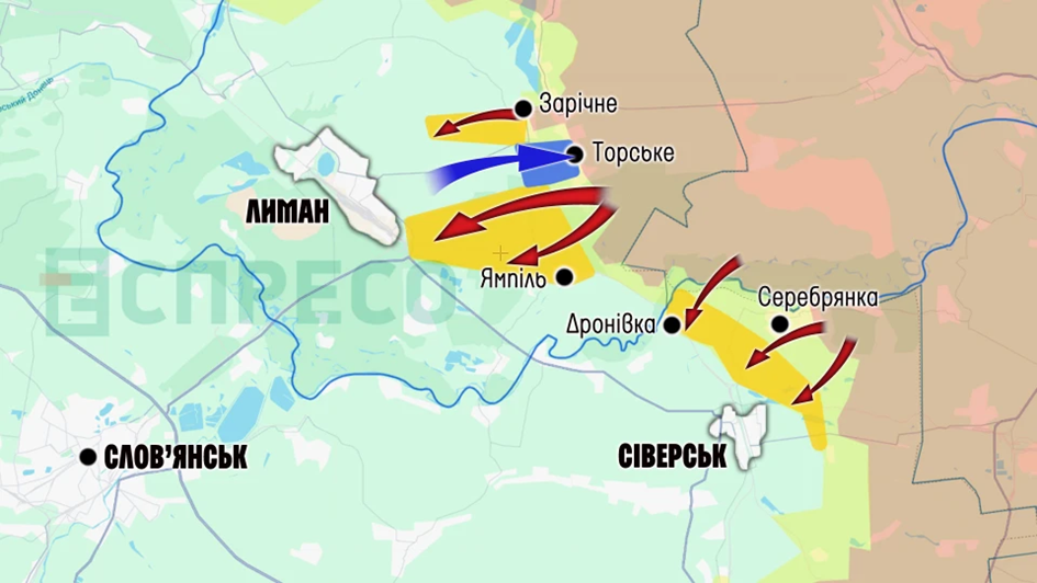 Malgré la tendance continue au déclin de l’activité des forces armées russes sur presque tout le front, la tendance principale cette semaine a été des tentatives massives d’entrer dans les villes ukrainiennes où l’ennemi n’était pas encore présent, en particulier Lyman, Siversk et Kostyantynivka, ainsi que de développer une offensive sur les districts centraux de Kupyansk, Pokrovsk et Vovchansk.