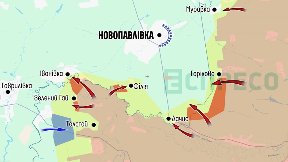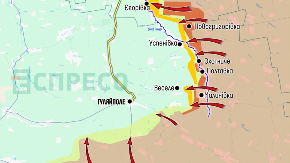 Les occupants ont notamment réussi à étendre leur zone de contrôle le long du fleuve, de Novohrygorivka à Malynivka. Ils ont occupé Poltavka et Okhotnyche et poursuivent leur progression vers le nord, le long du fleuve Yanchur, jusqu’à notre zone fortifiée d’Uspenivka. De l’autre côté du fleuve, l’ennemi guette déjà l’occasion de traverser et d’occuper plusieurs villages. Ainsi, les occupants pourront attaquer Hulyaipole non seulement par le sud et l’est, mais aussi par le nord, où ils progresseront progressivement jusqu’à couper complètement la ville de tout approvisionnement. À l’heure actuelle, une offensive rampante sur Zaporijia pourrait avoir des conséquences négatives importantes pour la défense de toute la région.