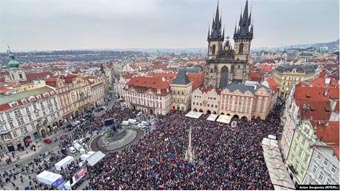Les manifestations ont été organisées en réponse à l’appel de l’initiative citoyenne « Un million de moments pour la démocratie ». À Prague, les participants se sont rassemblés sur la place de la Vieille Ville et la place Venceslas, en plein centre-ville. Les organisateurs estiment qu’entre 80 000 et 90 000 personnes ont participé au rassemblement, ce qui en fait l’une des plus importantes manifestations de ces dernières années. La foule scandait des slogans tels que « Nous ne sommes pas seuls ! ». Outre le drapeau tchèque, les manifestants brandissaient également des drapeaux de l’UE et de l’Ukraine.