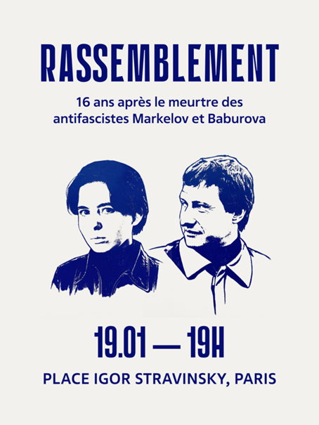 Le 19 janvier 2009 est une date charnière, une blessure durable dans notre mémoire collective. Ce jour-là, en plein centre de Moscou, nos camarades Stanislav MARKELOV et Anastasia BABOUROVA ont été assassinés. Le tireur était membre d’un groupe néonazi clandestin qui appartenait à une organisation dont l’aile officielle était soutenue par l’administration poutinienne.
