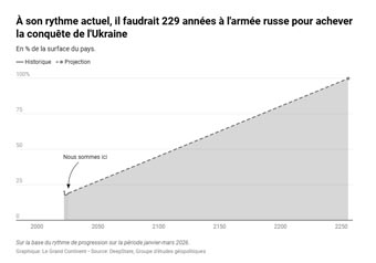 Si le temps long de la guerre d’attrition a pu favoriser Moscou depuis 2022, cette tendance semble aujourd’hui moins évidente. Le niveau des pertes humaines russes dépasse ses capacités de reconstitution, selon le commandant en chef des armées ukrainiennes, et les capacités ukrainiennes de production de drones — dont l’objectif est fixé à 7 millions d’unités cette année — contribuent à suffisamment saturer le front pour limiter efficacement les tentatives de percée russes.