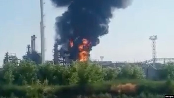 Il s’agit de la raffinerie de pétrole de Novochakhtinsk. Elle a pris feu dans la nuit du 21 août après une attaque de drones ukrainiens et brûle depuis trois jours.