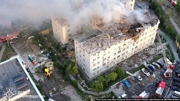 Le Service d’urgence de l’État ukrainien a précisé que l’attaque s’est produite vers 5 heures du matin. À la suite de l’attaque, des incendies se sont déclarés aux premier, troisième et cinquième étages sur une superficie totale de 900 mètres carrés.