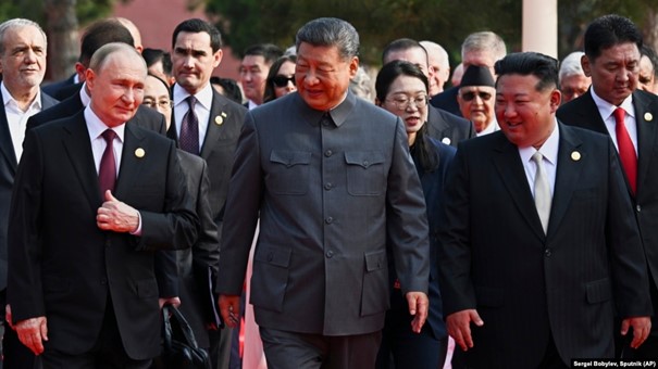 Le dirigeant nord-coréen Kim Jong-un a marché aux côtés de Poutine et de Xi Jinping, mais on ignore s’il a participé à la conversation. Cependant, l’émission incluait une traduction en coréen d’un commentaire sur la transplantation d’organes.