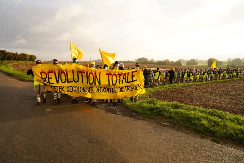 08/10/2022: Hundreds of activists of the coalition Code Rouge/Code Rood block the site of oil and gas giant TotalEnergies in Feluy (Belgium). They are demanding an exit from fossil fuels and denoucing the fossil fuel industry's responsibility in the climate and social crisis.