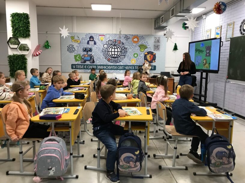 L’ouverture de l’école, indique Anna Yatsenko, professeure d’ukrainien que nous rencontrons dans le hall d’entrée, a été « bien accueillie » par les parents. De février 2022 à septembre 2023, rappelle sa collègue, Olga Skydan, professeure d’anglais et de français, l’enseignement se déroulait exclusivement en ligne. « Certains parents ne supportaient plus de voir leurs enfants passer leurs journées devant un écran », indique-t-elle, sur un ton compréhensif.