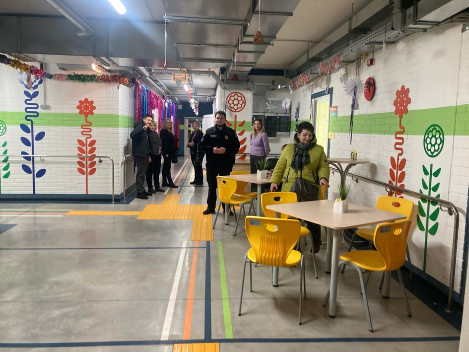 Ces mauvais souvenirs ne sont pas les seules causes de troubles psychologiques pour les élèves. Certains d’entre eux ont perdu des membres de leur famille ; d’autres ont dû fuir les combats ou les territoires occupés avec leur famille. « L’école compte plus de 200 élèves déplacés », poursuit le directeur. Selon lui, leur intégration se déroule sans encombre. Venus des oblasts de Kharkiv, Soumy, Donetsk, Louhansk et d’ailleurs, des milliers de réfugiés ont refait leur vie ici, à Kharkiv, malgré la proximité du front. Retour au hall d’entrée. La discussion se poursuit à la cafétéria.