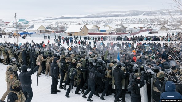 En janvier 2024, des manifestations de masse ont éclaté au Bachkortostan suite à la condamnation de Fail Alsynov, militant écologiste local. Des milliers de personnes se sont rassemblées devant le tribunal de Baymak pour soutenir Alsynov. Des affrontements avec la police et des arrestations ont eu lieu. Les forces de l’ordre ont fait un usage intensif de matraques et de gaz lacrymogène.